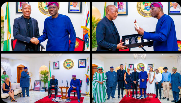 Governor Babajide Sanwo-Olu welcomed Mr. Julius Malema, President of South Africa’s Economic Freedom Fighters (EFF), to Lagos House, Marina, on Saturday, 23 August 2025, in a significant courtesy visit that underscored the strengthening of ties between Nigeria and South Africa. The visit, which took place ahead of the Nigerian Bar Association’s Annual General Conference in Enugu, highlighted Malema’s commitment to fostering African unity and addressing shared challenges.