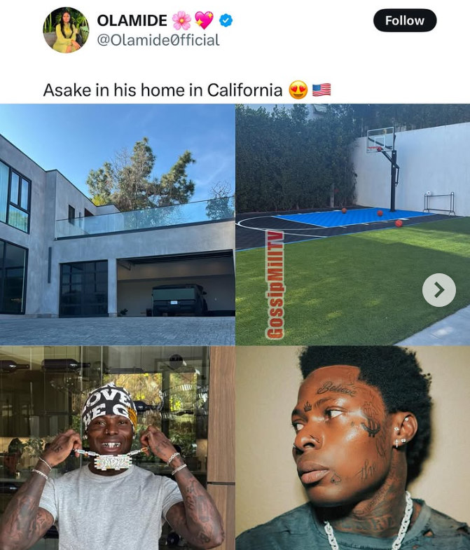 Nigerian singer Ahmed Ololade, popularly known as Asake, has been trending online after sharing photos and videos of his alleged house in California, America.